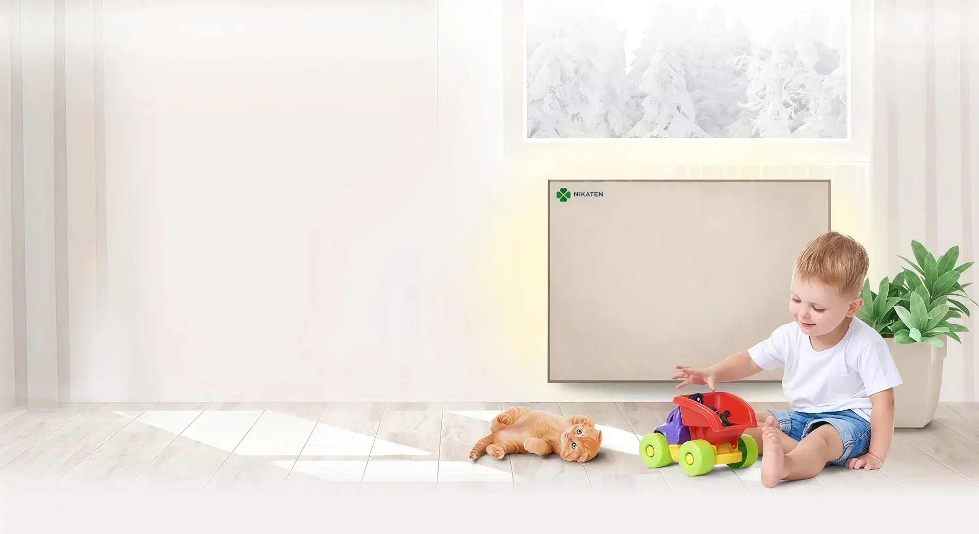 В керамических обогревателях Никатэн используется два вида тепла: инфракрасный и конвекционный. Длинноволновое ИК-излучение прогревает стены, пол и мебель, а те, в свою очередь, аккумулируют тепло и отдают его в помещение. Так для обогрева комнаты тратиться намного меньше энергии.